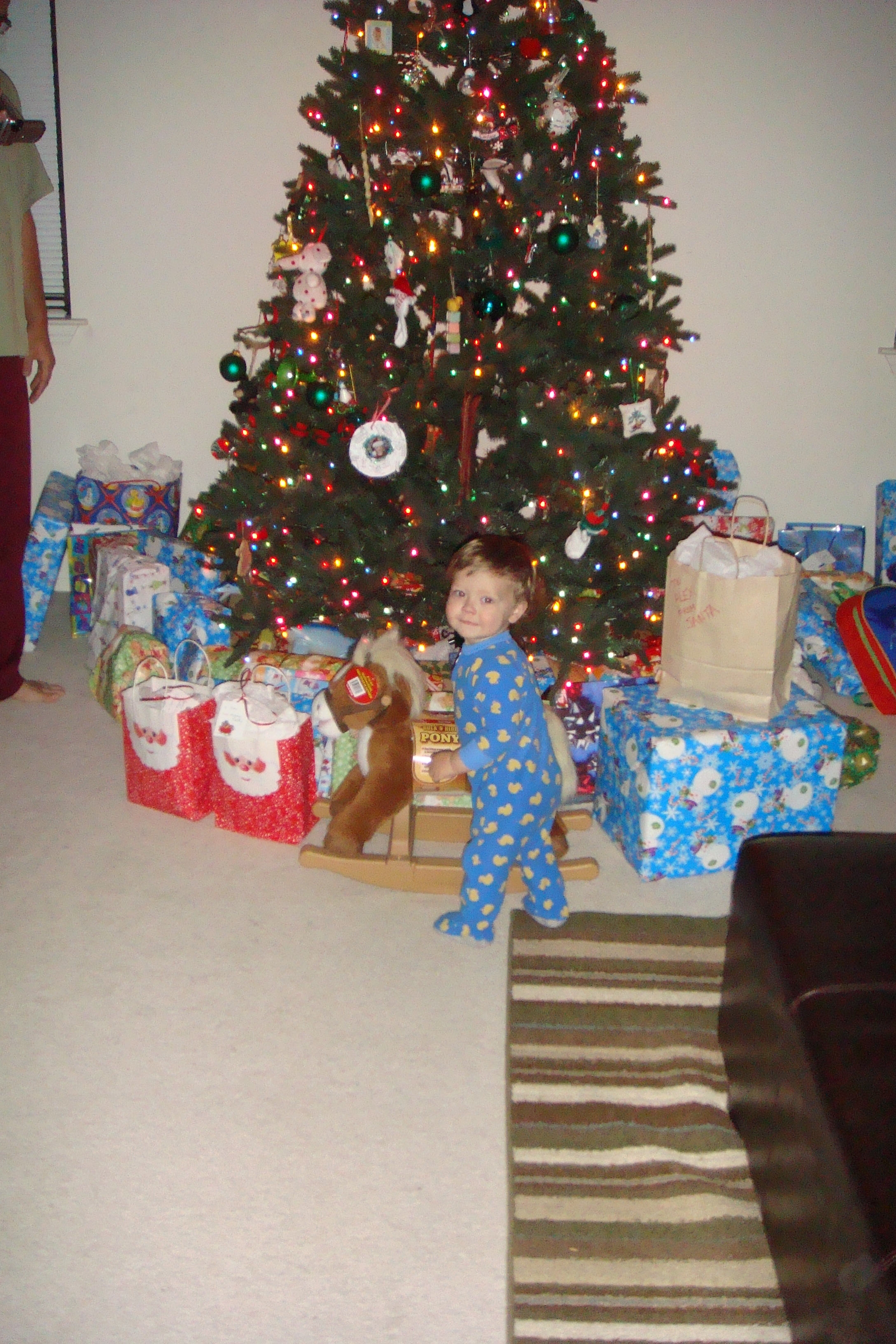 …..and he looked a bit like Kenny Rogers before the cheek implants. The kids had a blast, but I am always somehow disappointed that afterwards they say their favorite part was having the parade people hurl candies at them. These end up coming home with us and the majority are shattered or smooshed behind recognition. But, oh the joy of having a complete stranger dressed in a Santa hat and cowboy boots flinging candy missiles at your head. When you are six and four, I guess that really is the bee’s knees. Sam, bless his heart, is still far more impressed by the Clydesdales, and the random goats and dogs dressed as reindeer. I know he will turn to the dark side soon just like his brothers. He will tolerate the animals, and the sweetly off-key elementary school marching band, while he waits with baited breath for someone to fire a handful of stale candy (probably from Halloween) at his perfect little head. So I try to take great pleasure in watching his eyes light up when he sees the livestock marching past; and my eyes get just a little full when I see him stand up and wobble his little hips to the melodious and almost indistinguishable sounds of Jingle Bell Rock as played by the Santa Ynez Bobcats. Then, finally the last float is Santa and Mrs. Claus (who I am fairly certain are dating). His beard is a dirty, mottled gray….but, darn it, it is real. He has been our local Santa for eons it seems. But, Sam doesn’t see any of that. His eyes dance when they see Santa on his sleigh (a flatbed trailer pulled by a pick-up truck.) I am so small town. And I am so very proud of that.