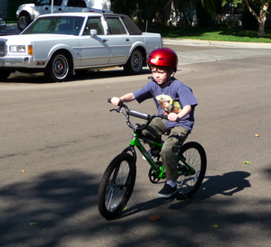Last night as the shadows grew long on our quiet street, Zach reached for the brass ring and grabbed it. He rode his bike alone—no extra wheels, no dad or mom hand on the back of the seat. And I have got to tell you, the swell of pride in my heart was enormous. I think I was more thrilled for him at that moment—-with his face lighting up, doing the happy dance and saying, “I did it!”—than I have ever been (and that includes law school and passing that dastardly bar, too).