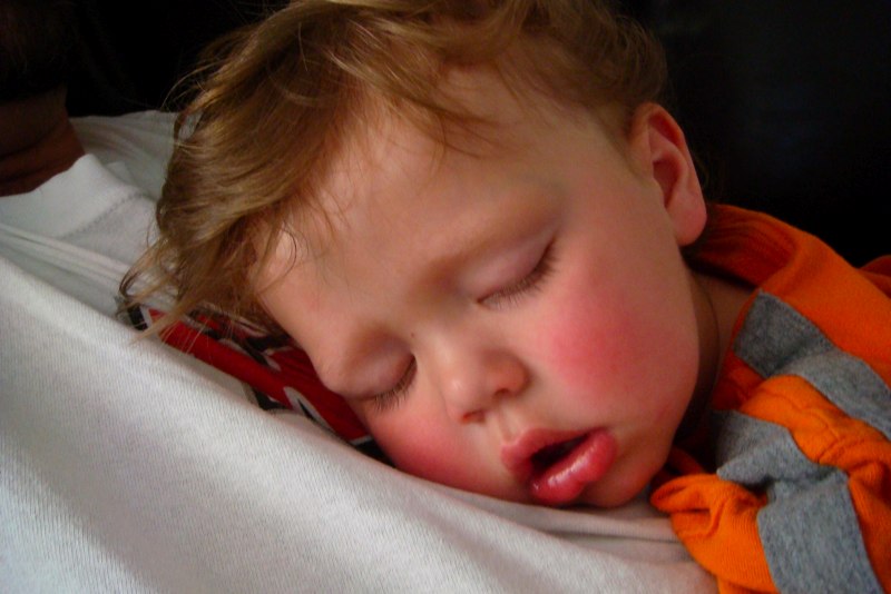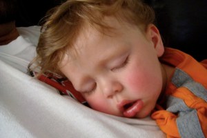 A few nights ago, Sam came wobbling into our bedroom. I usually hear the door open even before he reaches the side of my bed, but this night I woke to find him right next to me. His face was pink and flushed, and his hair was curling away from his neck and forehead in sweaty little commas. I got out of bed and scooped him up. His temp was 103, which would have terrified me, but for the fact that Sam is the third pancake so I know to watch and wait, rather than flip that thing too soon.